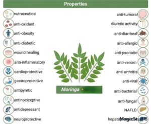 Native to India, Pakistan, Bangladesh, and Afghanistan, Moringa (Moringa ) is a fast-growing, drought-resistant tree that is now found in tropical and subtropical areas of the world, including parts of Africa, Southeast Asia, and Latin America. It has long been used in Ayurvedic and folk medicine to treat a variety of conditions, such as high blood pressure, dental pain, and stomach ulcers. Its anti-inflammatory, antimicrobial, and hypotensive qualities are thought to be attributed to the abundance of bioactive substances found in its leaves, pods, seeds, and roots, including flavonoids, glucosinolates, phenolic acids, and alkaloids.