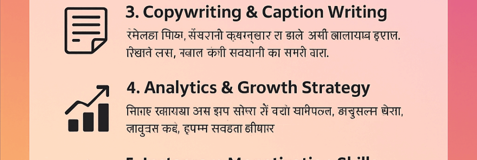 💡 1. Content Creation Skill Instagram पर सबसे ज़रूरी है — क्रिएटिव और यूनिक कंटेंट बनाना।📷 Reels, 🎥 Videos, 🎨 Graphics, ✍️ Captions — सबका बैलेंस बहुत मायने रखता है। कैसे सीखें: 🎬 2. Video Editing & Reels Mastery Reels ही Instagram की जान हैं!अगर आप Reels Editing में माहिर हैं, तो आपका प्रोफ़ाइल तेजी …